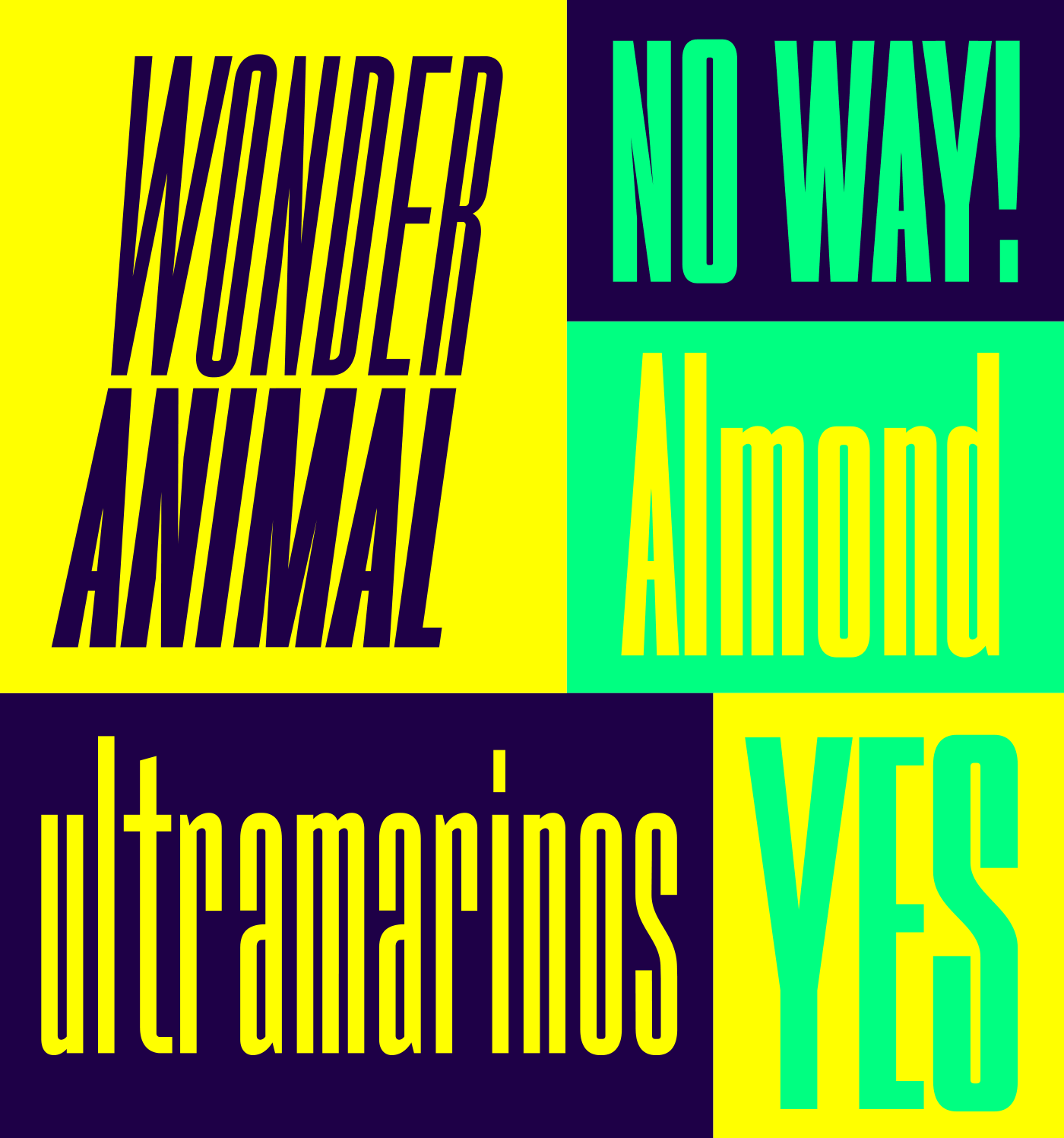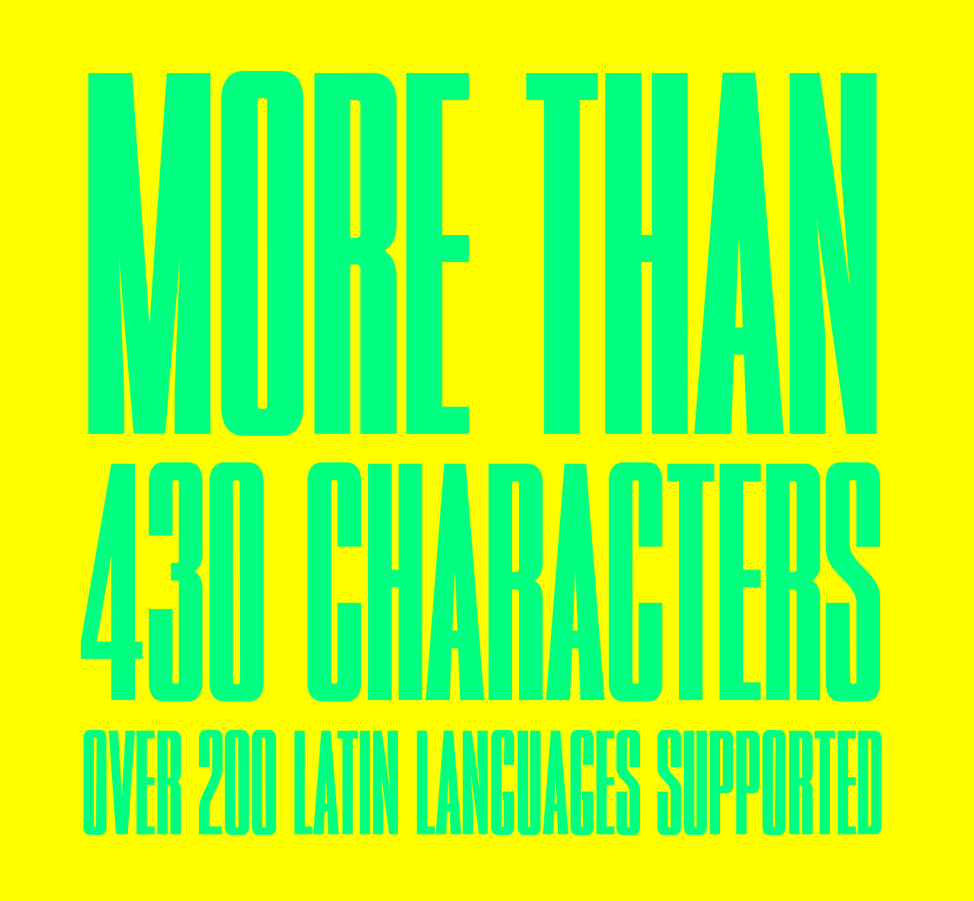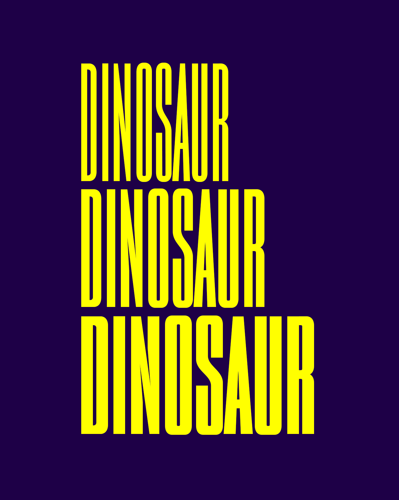 Dinosaur is a very grotesk and extremely condensed display font. Only useful for very big and short texts. The font comes with three regular weights and three italic weights. With 448 glyphs, Dinosaur font supports over 200 Latin-based languages.